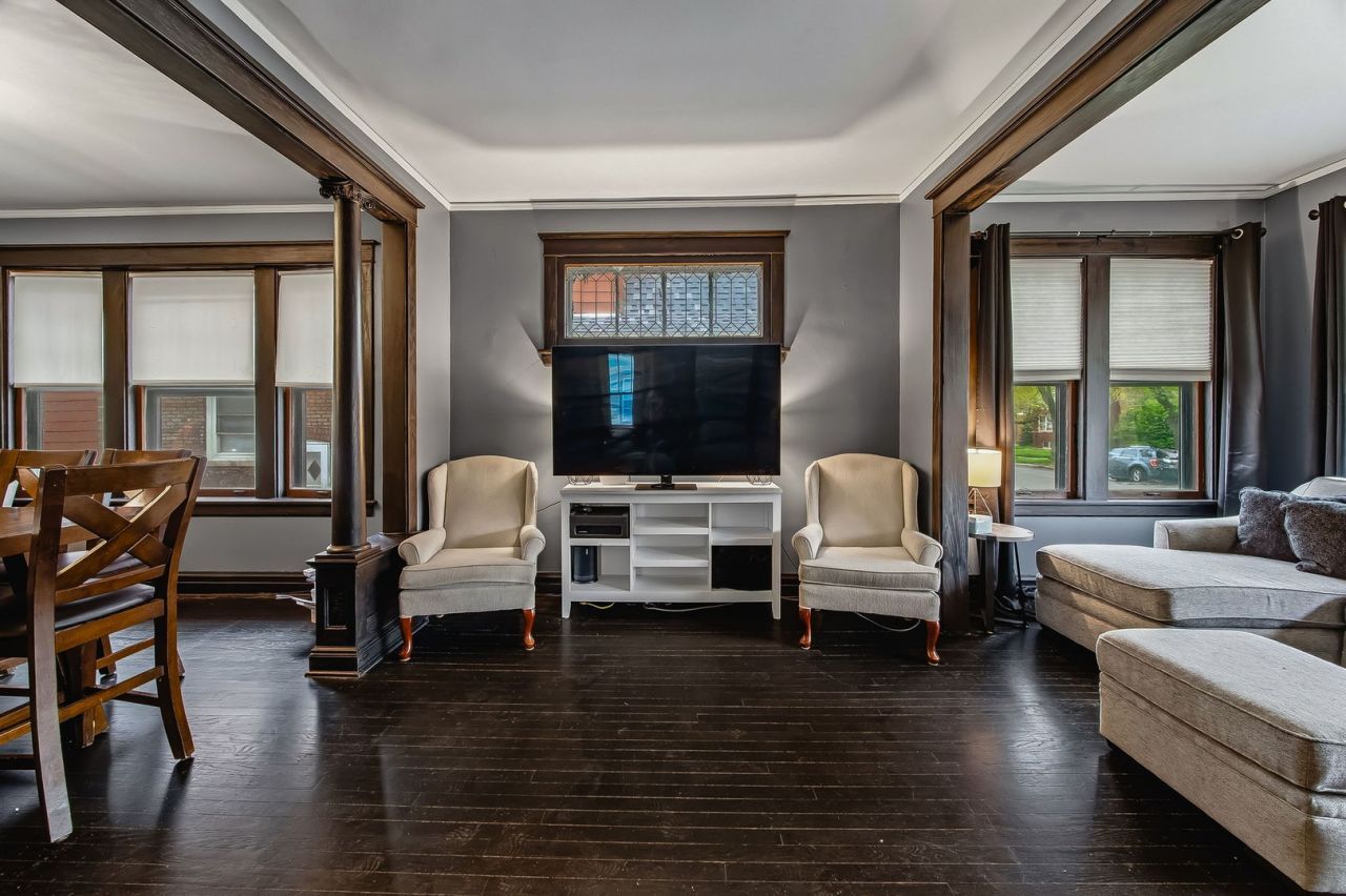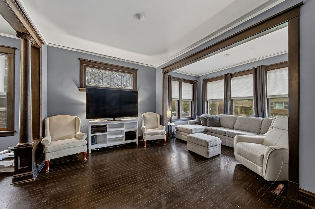 Charming and well-maintained 3-bedroom, 2-bath bungalow situated on a large, level lot! This home offers timeless appeal with a classic brick exterior and a welcoming enclosed front porch-perfect for relaxing year-round. Inside, you'll find hardwood floors throughout the main living areas and two main-level bedrooms. The spacious living room features beautiful columns that create a seamless flow into the separate dining area, adding character and definition to the space. The generously sized kitchen is equipped with recessed lighting, ample counter space, and stainless steel appliances-including an oven/range, microwave, dishwasher, and refrigerator-along with a farmhouse-style sink, making it ideal for both everyday living and entertaining. A full bathroom with a tub/shower combo completes the main level. Upstairs, enjoy newly installed carpet and a versatile loft area that can serve as a home office, playroom, or additional living space. The spacious primary suite includes a remodeled bathroom featuring a walk-in shower and a heated vanity mirror, offering a private retreat with modern touches. Additional highlights include an unfinished basement with laundry, a two-car detached garage with extra storage space, and major mechanical updates, with the A/C and furnace approximately 2-3 years old. This home combines comfort, functionality, and charm-ready for its next owner!