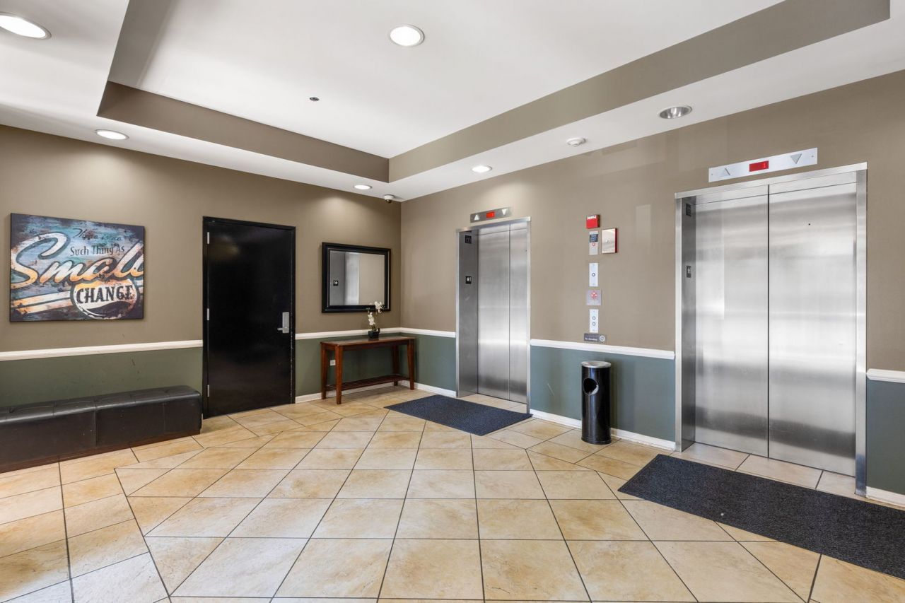 Discover modern living in this smartly designed 2-bedroom, 2-bathroom condo, offering 1,278 sq ft of sophisticated space with hardwood floors throughout. Nestled in the highly desirable Metropolitan Square, this unit perfectly blends convenience and style. Step inside to find a spacious living room with a cozy fireplace-perfect for those chilly evenings. The kitchen is both spacious and inviting, featuring granite countertops, 42 cabinets, and stainless steel appliances. The primary bedroom is a true retreat, boasting a generous walk-in closet and an ensuite bathroom equipped with a large bathtub, shower, and dual sinks. Enjoy your morning coffee or unwind after a long day on the large private balcony facing South, which offers an abundance of natural light. The in-unit washer and dryer add to the convenience, making laundry a hassle-free task. This unit comes with a host of amenities to enhance your lifestyle, including central AC, gas heat and radiant heating. The building features keyless fob entry for added security. You'll also have access to a heated parking garage, a service elevator, and a storage unit. The unit is pet-friendly, with pets considered on a conditional basis (30 lbs max). The location is unbeatable, with easy access to public transportation, shops, grocery stores, fitness centers, and a variety of restaurants. Schedule a showing today and make this your new home!